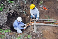 掘った木の根は路肩を守る貴重な建設材料 |